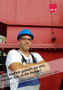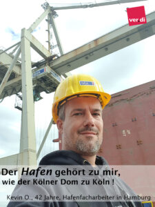 Wir sind die Menschen, die das Herz der Stadt zum Schlagen bringen. Wir sind die Beschäftigten des Hamburger Hafens! Noch wuseln täglich tausende Beschäftigte 24/7 in den Hafenbetrieben herum. Doch das wird sich bald ändern! Transformation durch Automatisierung und Digitalisierung werden schon bald dafür Sorge tragen, dass viele der Tätigkeiten, die jetzt noch von Menschen bewerkstelligt werden, durch automatisierte Prozesse ersetzt werden können. Gewinnmaximierung auf Kosten von Existenzen. Unsere Forderung ist klar: „Mensch vor Kapital!“ Deshalb macht euch sichtbar! Die Politik darf uns nicht länger ignorieren. Wir brauchen Antworten und Perspektiven! Macht ein Foto von euch und schreibt etwas über euch und eure Lebenssituation. Kopiert unter euren Text die Hashtags und stellt ihn online. Die Bilder werden wir sammeln hier unter den Hashtags in Facebook, im Instagramkanal „Gesichter des Hafens“ https://instagram.com/gesichter_des_hafens…und auf der Website https://www.wir-sind-der-hafen.de